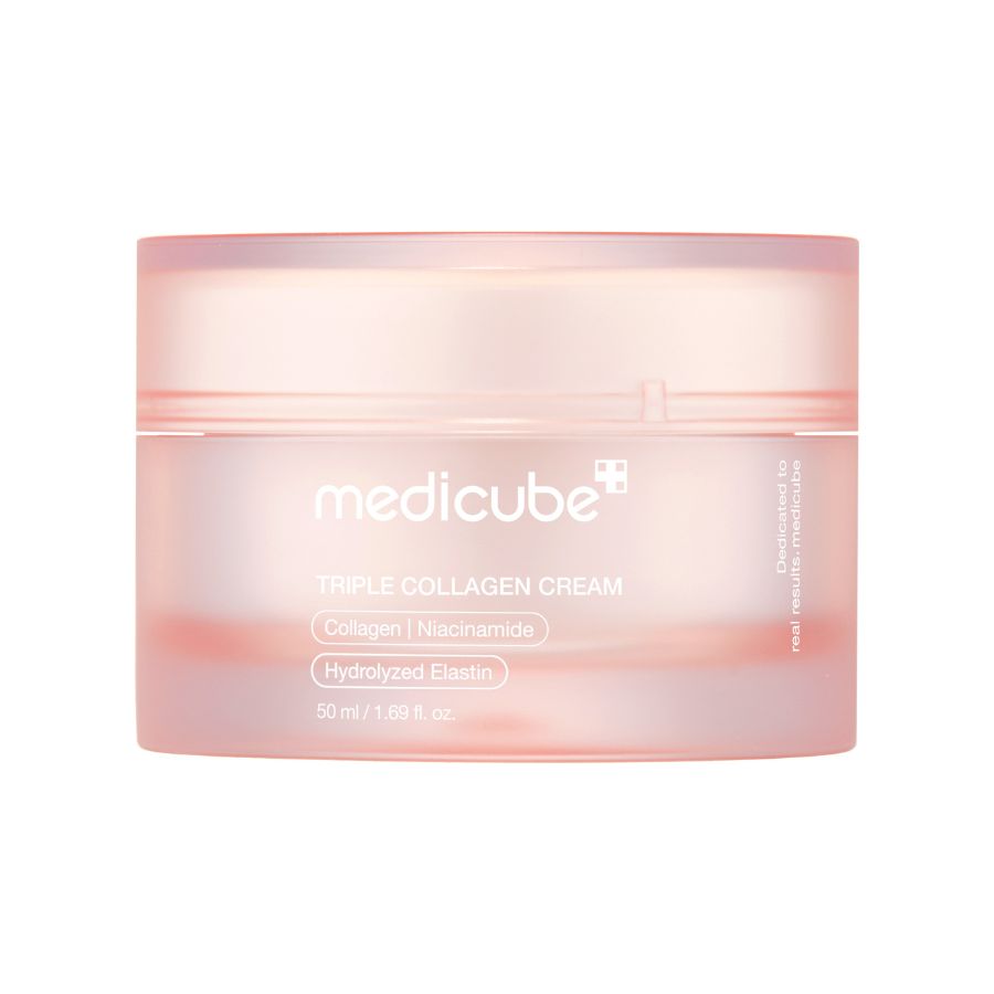 Jeg er Medicube Triple Collagen Cream – en avansert og nærende anti‑age ansiktskrem som gir intens fukt, forbedrer elastisiteten og fremhever en ungdommelig glød. Jeg styrker hudbarrieren og bekjemper flere tegn på aldring ved å kombinere tre kraftfulle kollagenformer med pleiende ingredienser som niacinamid, hyaluronsyre, sheasmør og et kompleks av patenterte botaniske ekstrakter, for en helhetlig og luksuriøs pleieopplevelse.