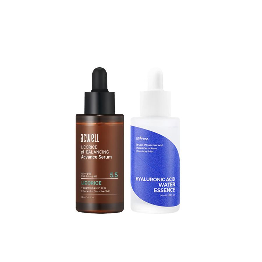 ACWELL Licorice pH Balancing Advance Serum og ISNTREE Hyaluronic Acid Water Essence – en perfekt kombinasjon for deg som ønsker jevnere hudtone, redusert pigmentering og dyp hydrering, uten å kompromisse med hudbarrieren.