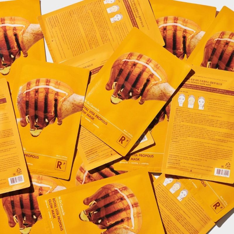Jeg er Dr. Ceuracle Royal Vita Propolis Mask – en intensiv sheet mask som kombinerer næringsrik propolis med vitaminer for å gi huden din glød, fuktighet og vitalitet på bare noen få minutter. Perfekt for dager hvor huden føles trøtt, gusten eller trenger litt ekstra pleie.