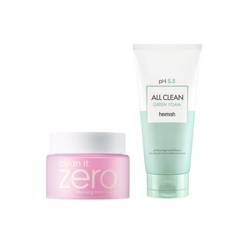 Ta en scoop av BANILA CO Clean It Zero Cleansing Balm og masser inn på tørr hud. Skyll av og påfør en passende mengde av COSRX AC Collection Calming Foam Cleanser og masser inn i huden og skyll av. Fortsett med din vanlige hudpleierutine.