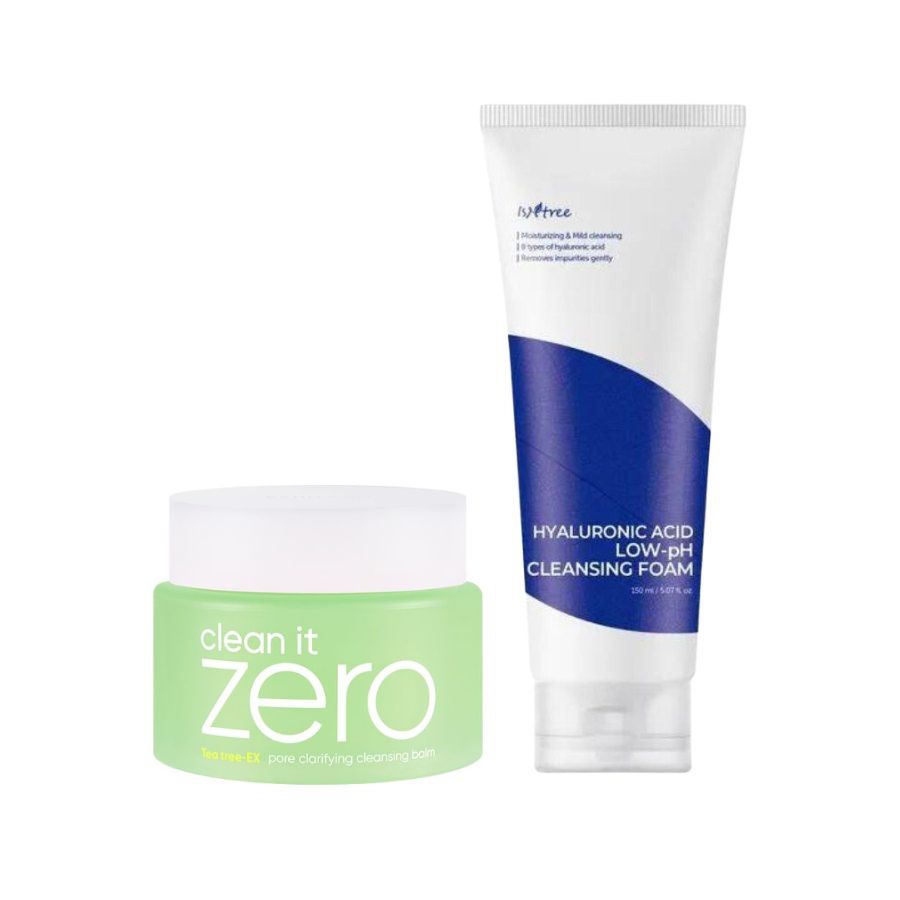 Jeg er kundeserviceansvarlig Alma sin favoritt dobbelrens! Jeg består av BANILA CO Clean It Zero Cleansing Balm Pore Clarifying og ISNTREE Hyaluronic Acid Low-pH Cleansing Foam. Sammen vil disse fjerne sminke og overflødig talg samtidig som de skånsomt renser huden på dypden. Denne renseduoen passer alle best til kombinasjonshud og akneutsatt hud.