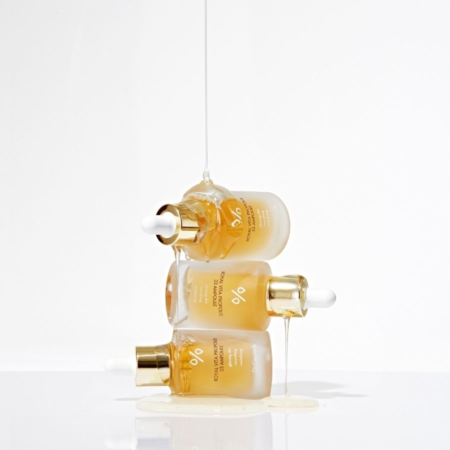 Jeg er Dr. Ceuracle Royal Vita Propolis 33 Ampoule – et kraftfull serum som kombinerer 33% propolisekstrakt med et unikt vitaminkompleks for å gi huden din en ungdommelig glød, styrke og vitalitet. Jeg er laget for å gi huden dyp fuktighet og næring, samtidig som jeg styrker hudbarrieren. I tillegg beskytter jeg mot ytre stressfaktorer.