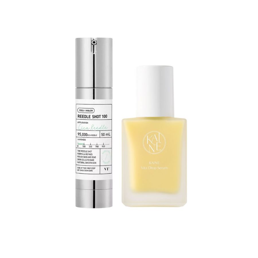 Hvis du har en ujevn hudtone eller en hud med tekstur er dette duoen for deg. Med en essens som inneholder små microneedles og et serum med vitamin E og C vil disse sammen forebygge og behandle både pigmentflekker og tekstur på huden. I tillegg vil duoen effektiv bidra til å minimere synligheten av porer og fjerne døde hudceller, samtidig som de etterlater huden med en sunn glød. Reedle Shot 100 øker hudens absorpsjonsevne og stimulere til bedre opptak av aktive ingredienser, mens Vita Drop Serum tilfører vitaminer, fukt og glød til huden.