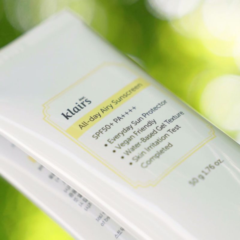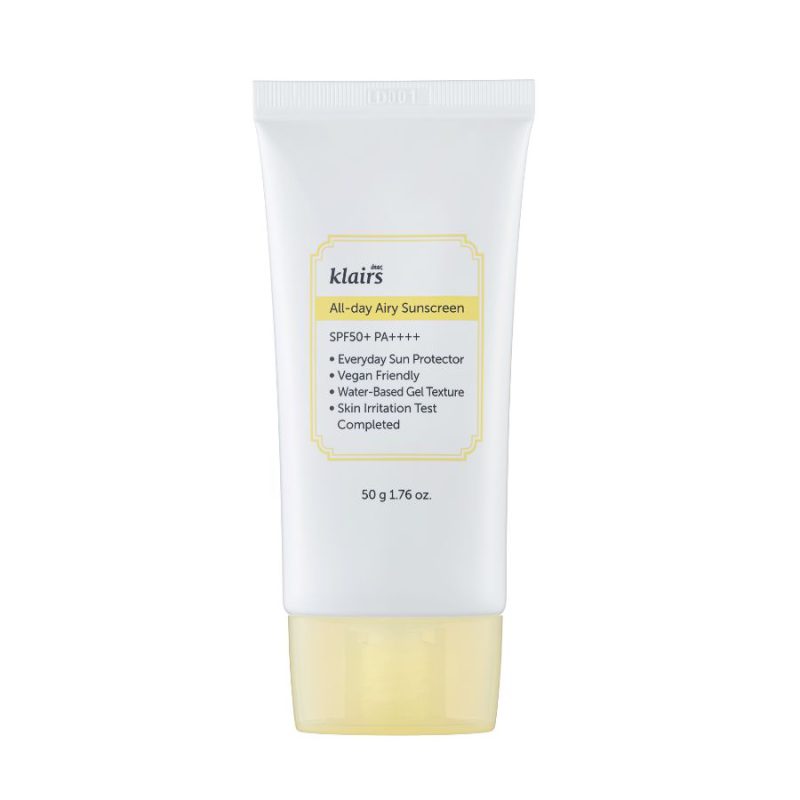 Jeg er Klairs All-Day Airy Sunscreen, en ultralett, fuktighetsgivende solkrem med SPF 50+ PA++++ som gir huden din optimal beskyttelse mot både UVA- og UVB-stråler. Med min avanserte formulering beskytter jeg huden effektivt mot skadelige solpåvirkninger – uten å etterlate en hvit hinne eller føles tung på huden.