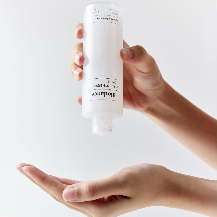 Jeg er Biodance First Synergy Toner, en lett fuktighetsgivende toner/essens – det perfekte første steget etter rens! Ingredienslisten min er rik på 96 % fuktighetsgivende ingredienser som forbereder huden på de neste stegene i din hudpleierutine. Jeg har en serum-lignende konsistens som gir dyp og varig hydrering, selv med bare noen få dråper. Med en kombinasjon av flere typer hyalruonsyre, beroligende planteekstrakter og nærende ingredienser bidrar jeg til mykere hud, balansert fuktnivå og styrket hudbarriere. Resultatet er en frisk, balansert hud som er klar for serum, krem eller andre hudpleieprodukter.